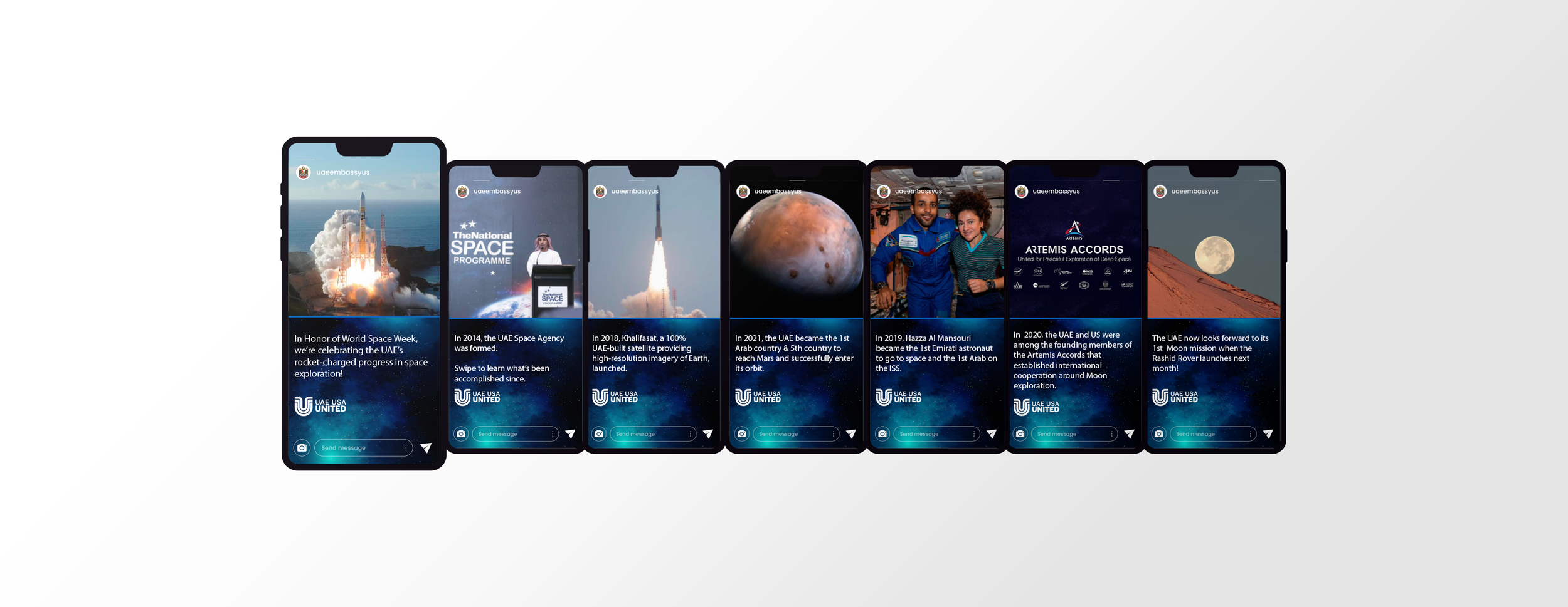 Throughout the year at the UAE Embassy, I created distinct UAE and USA holiday graphic designs within the embassy’s brand identity, for our different social platforms which include Instagram, Facebook, and Twitter.